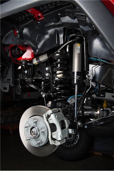 Complete 4-inch suspension system with high performance, bypass shock absorbers is the result of an exhaustive development process aimed at delivering the ultimate in both comfort and control. Combined ride, handling, and ability to absorb rough terrain is unequaled in other suspension systems.